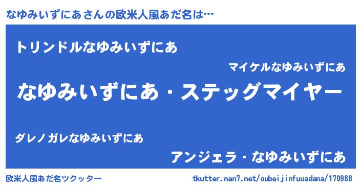 | 胡散臭い通販商品みたいなあだ名 | 『モテモテ間違いなし水晶球…その名も「なゆみいずにあ」』 |