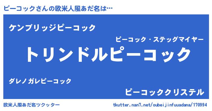 | 料理風あだ名 | 『ピーコックごはん』 |