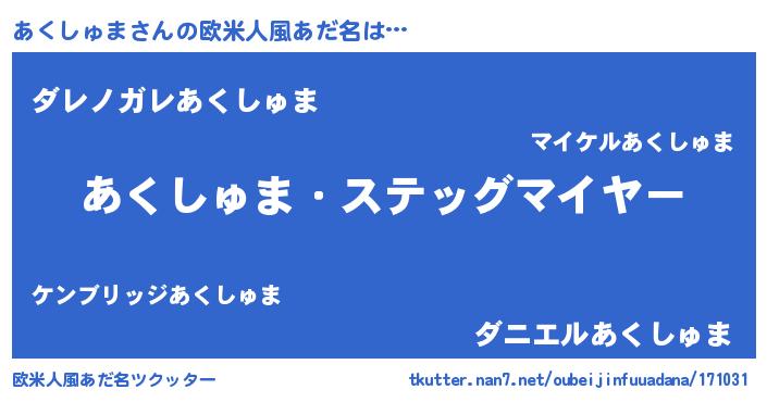 | 男性向けラノベタイトル風あだ名 | 『緋弾のアクシュマ』 |
