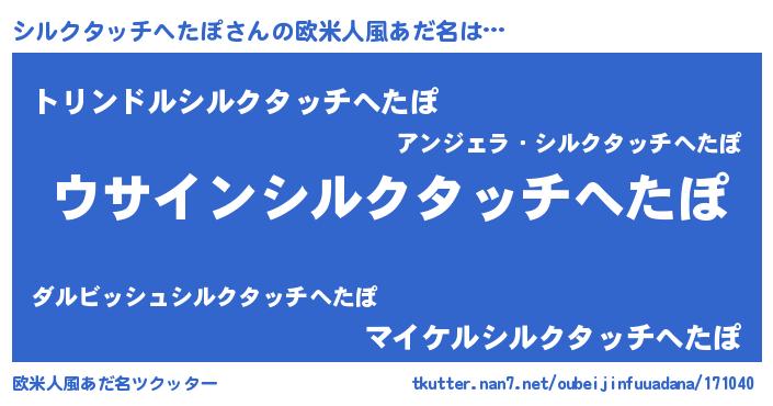 | 女子向けラノベタイトル風あだ名 | 『シルクタッチへたぽは平凡を望む』 |