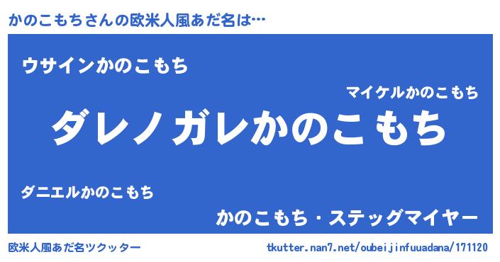 | 女子向けラノベタイトル風あだ名 | 『乙女ゲームの破滅フラグしかない悪役かのこもちに転生してしまった…』 |