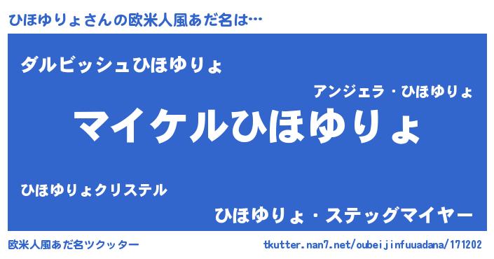 | 男性向けラノベタイトル風あだ名 | 『ヒホユリョアートオンライン』 |
