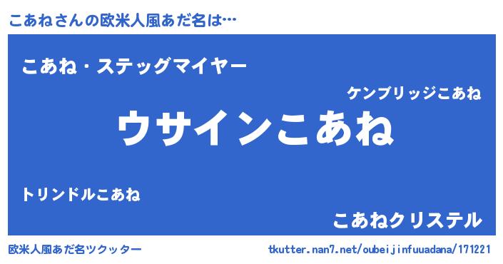 | 男性向けラノベタイトル風あだ名 | 『こあねの嫁は女の子じゃないと思った?』 |