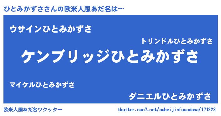 | 男性向けラノベタイトル風あだ名 | 『Re:ひとみかずさから始める異世界生活』 |