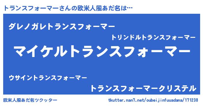 胡散臭い通販商品みたいなあだ名 | 『必ず成功する霊験あらたかなお札…その名も「トランスフォーマー」』 |