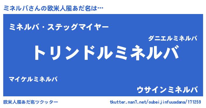| 男性向けラノベタイトル風あだ名 | 『ミネルバスレイヤー』『ミネルバの憂鬱』 |