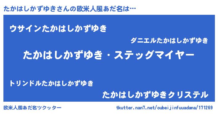 | 男性向けラノベタイトル風あだ名 | 『緋弾のタカハシカズユキ』 |