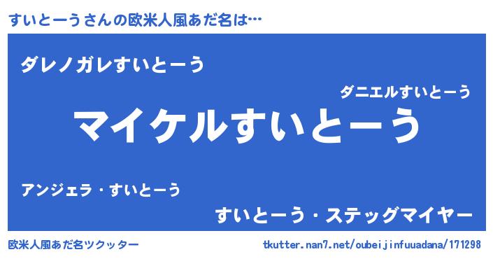 | ヘコむあだ名 | 『すいにゅー』『すいとーう(小並感)』 |
