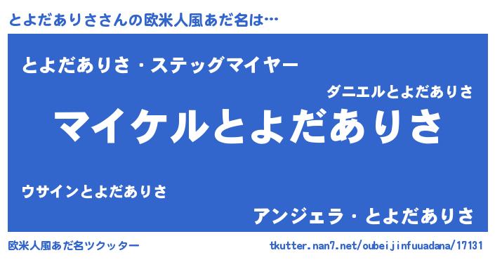 | 男性向けラノベタイトル風あだ名 | 『トヨダアリサアートオンライン』 |