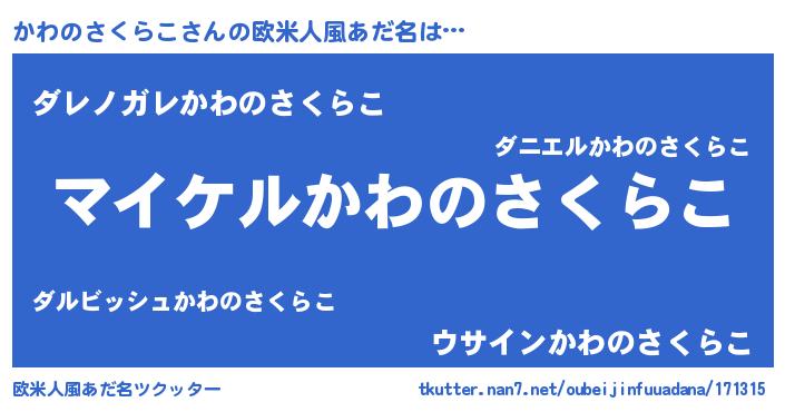 | 男性向けラノベタイトル風あだ名 | 『カワノサクラコアートオンライン』 |