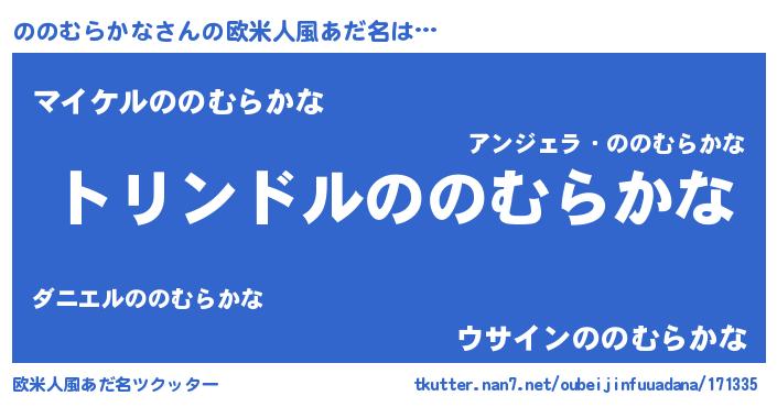 | 男性向けラノベタイトル風あだ名 | 『ののむらかな~年齢イコール彼女いない歴の魔法使い~』 |