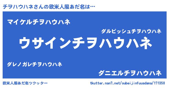 | 意味不明あだ名 | 『とにかく怪しいチヲハウハネ』 |