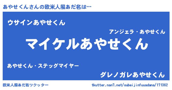 | 胡散臭い通販商品みたいなあだ名 | 『必ず成功する霊験あらたかなお札…その名も「あやせくん」』 |
