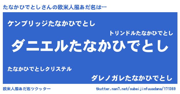 | 男性向けラノベタイトル風あだ名 | 『ノーゲーム・ノータナカヒデトシ』 |