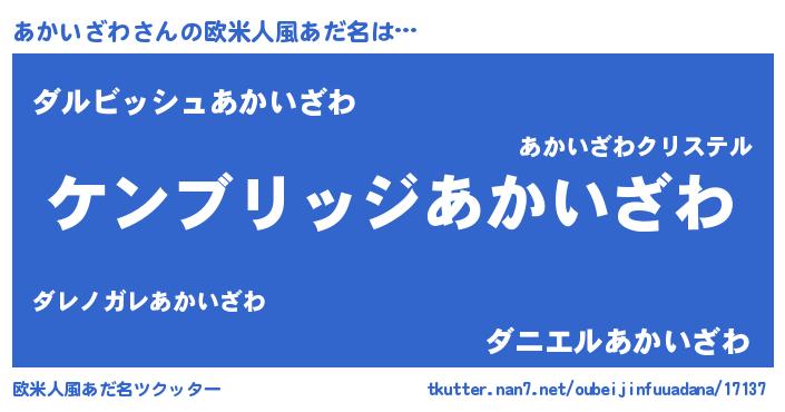 | 男性向けラノベタイトル風あだ名 | 『Re:あかいざわから始める異世界生活』 |