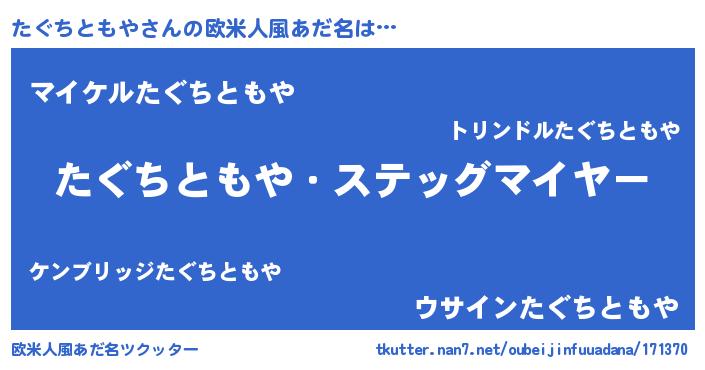 | 男性向けラノベタイトル風あだ名 | 『冴えないたぐちともやの育てかた』 |