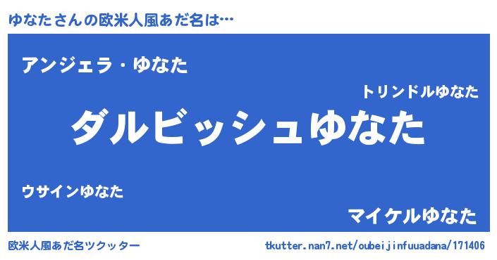 | 女子向けラノベタイトル風あだ名 | 『ゆなたの契約王妃』 |
