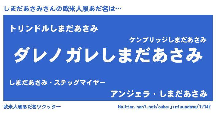 | 男性向けラノベタイトル風あだ名 | 『魔弾の王としまだあさみ』 |