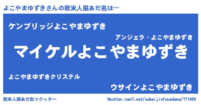 | 男性向けラノベタイトル風あだ名 | 『ヨコヤマユズキアートオンライン』 |