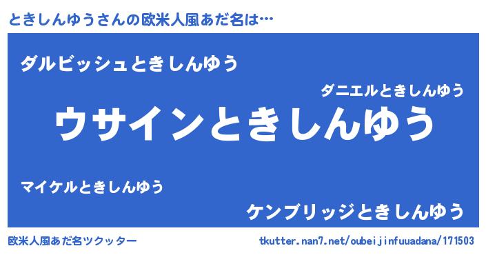 | 女子向けラノベタイトル風あだ名 | 『ときしんゆうは平凡を望む』 |