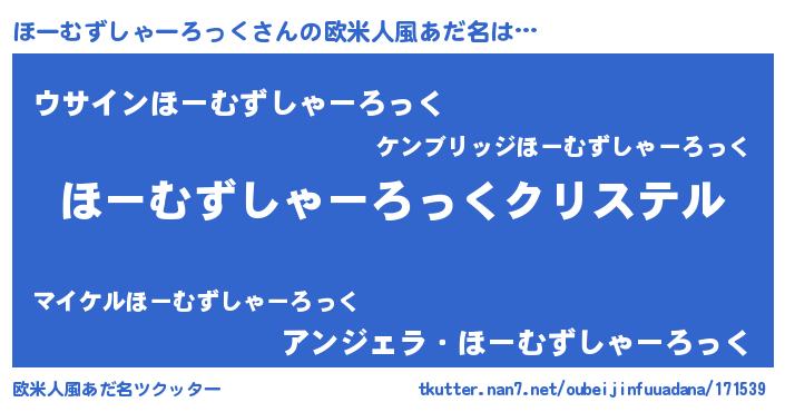 | ポケモン風あだ名 | 『ホームダネ』『ヒホームズシャーロック』 |