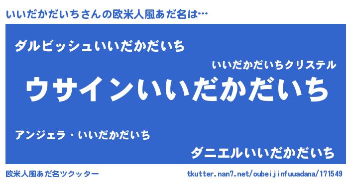 | 男性向けラノベタイトル風あだ名 | 『いいだかだいちの嫁は女の子じゃないと思った?』 |