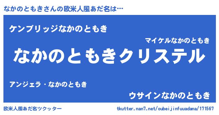 | 男性向けラノベタイトル風あだ名 | 『やはりなかのともきの青春ラブコメはまちがっている 』 |