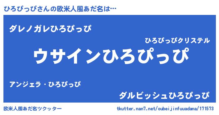 | 男性向けラノベタイトル風あだ名 | 『ひろぴっぴの嫁は女の子じゃないと思った?』 |