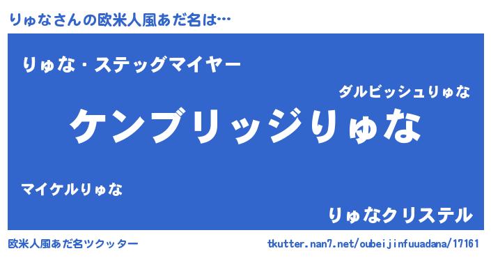 | 男性向けラノベタイトル風あだ名 | 『Re:りゅなから始める異世界生活』 |