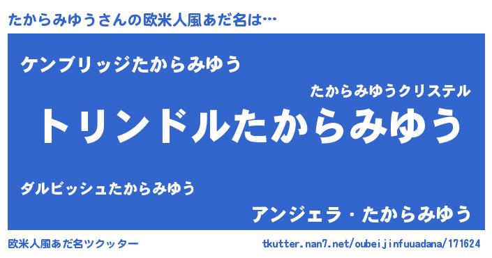 | 男性向けラノベタイトル風あだ名 | 『タカラミユウスレイヤー』 |