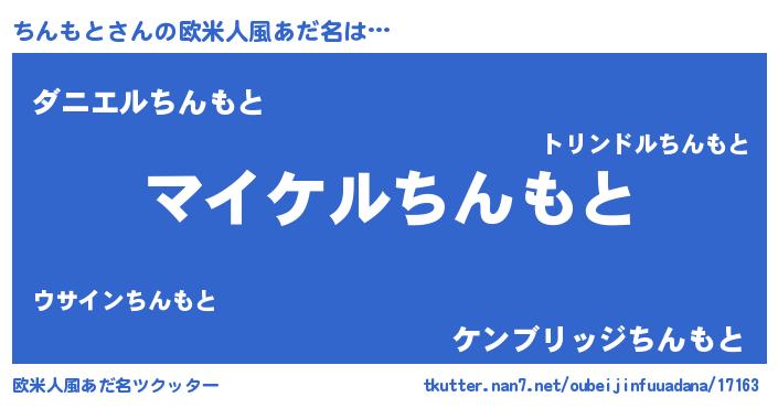 | 男性向けラノベタイトル風あだ名 | 『ちんもとの憂鬱』 |