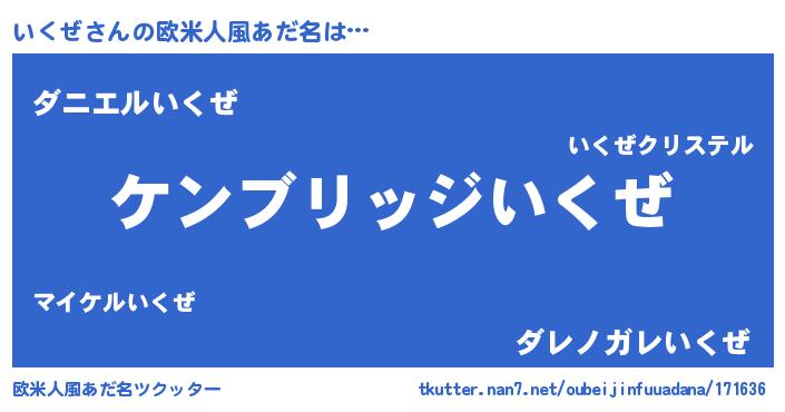 | ヒーロー風カッコイイあだ名 | 『究極戦士イクゼ』『慈愛の使者いくぜ』 |