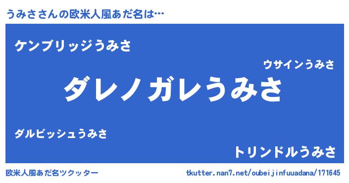 | 男性向けラノベタイトル風あだ名 | 『魔弾の王とうみさ』『ウミサスレイヤー』 |