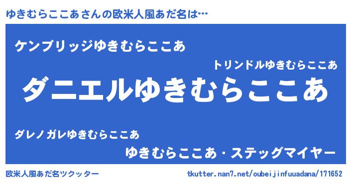 | 女子向けラノベタイトル風あだ名 | 『ゆきむらここあ夫妻のなれそめ』 |