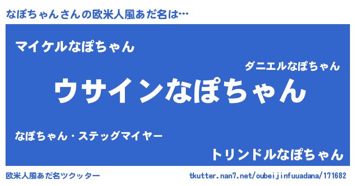 | 男性向けラノベタイトル風あだ名 | 『なぽちゃんの嫁は女の子じゃないと思った?』 |