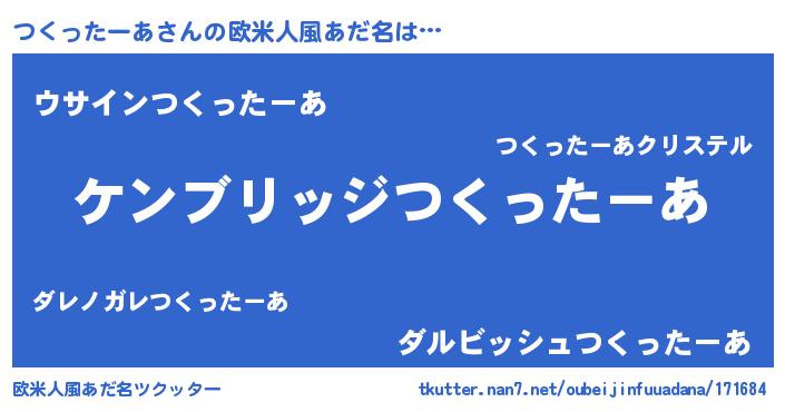 | 男性向けラノベタイトル風あだ名 | 『Re:つくったーあから始める異世界生活』 |