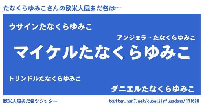 | ポケモン風あだ名 | 『タナチュウ』『ヒタナクラユミコ』 |