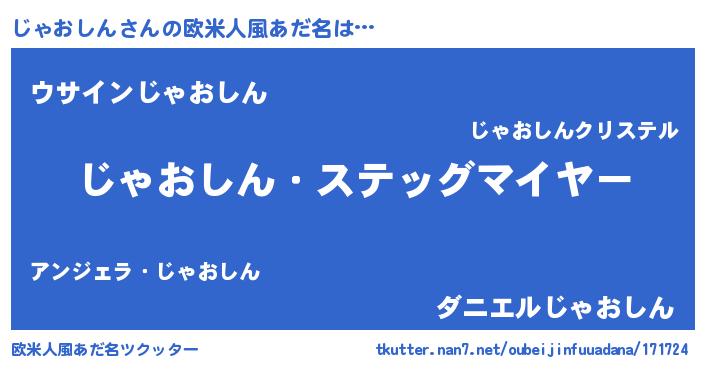 | 男性向けラノベタイトル風あだ名 | 『うちのじゃおしんが世界を掌握している!』 |