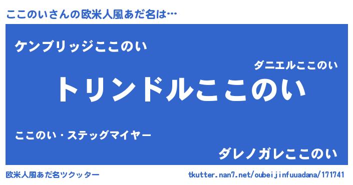 | 女子向けラノベタイトル風あだ名 | 『ここのいの玉の輿計画!』 |