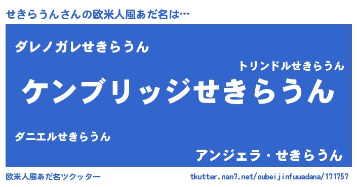 | 女子向けラノベタイトル風あだ名 | 『せきらうんなんてお断りですっ。』 |