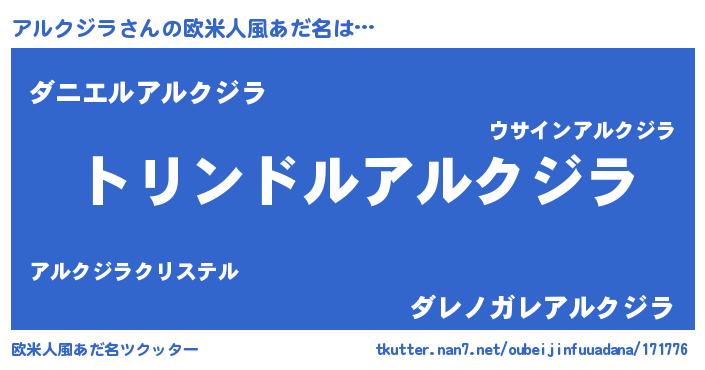 | 女子向けラノベタイトル風あだ名 | 『アルクジラの玉の輿計画!』 |