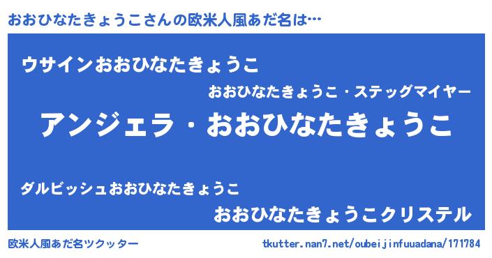 | 意味不明あだ名 | 『とにかく怪しいおおひなたきょうこ』 |