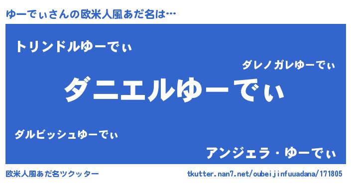 | ヘコむあだ名 | 『ゆーでぃ(笑)』『つくし』 |