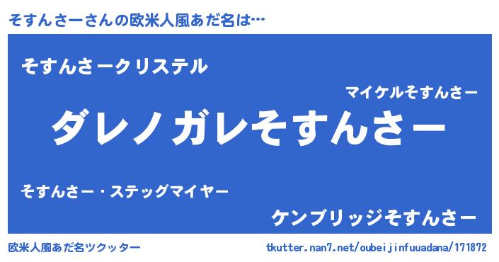 | 意味不明あだ名 | 『住所不定無職そすんさー(65歳)』 |