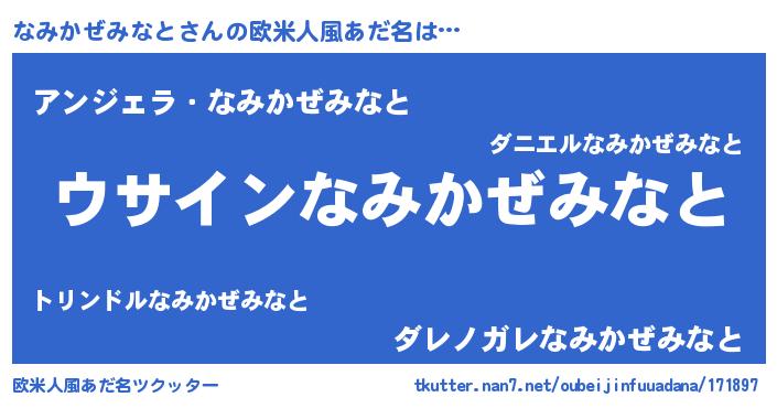 | 意味不明あだ名 | 『とにかく怪しいなみかぜみなと』 |