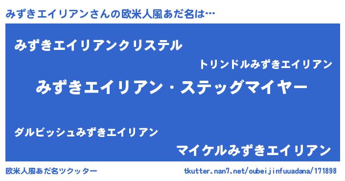 | 意味不明あだ名 | 『みずきエイリアンフォーエバー』 |