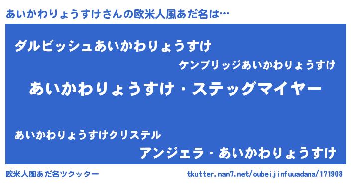 | 男性向けラノベタイトル風あだ名 | 『緋弾のアイカワリョウスケ』 |
