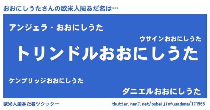 | 男性向けラノベタイトル風あだ名 | 『オオニシウタスレイヤー』 |