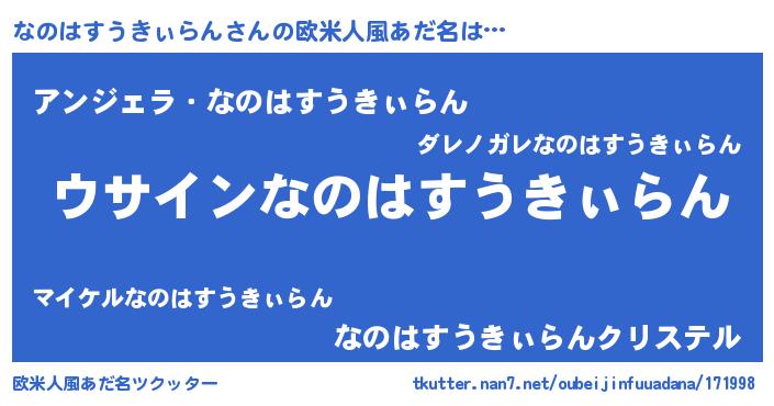 | 女子向けラノベタイトル風あだ名 | 『なのはすうきぃらんは平凡を望む』 |