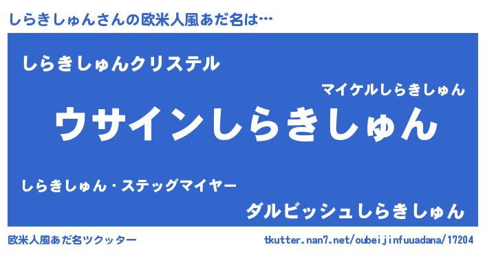 | 男性向けラノベタイトル風あだ名 | 『しらきしゅんの嫁は女の子じゃないと思った?』 |